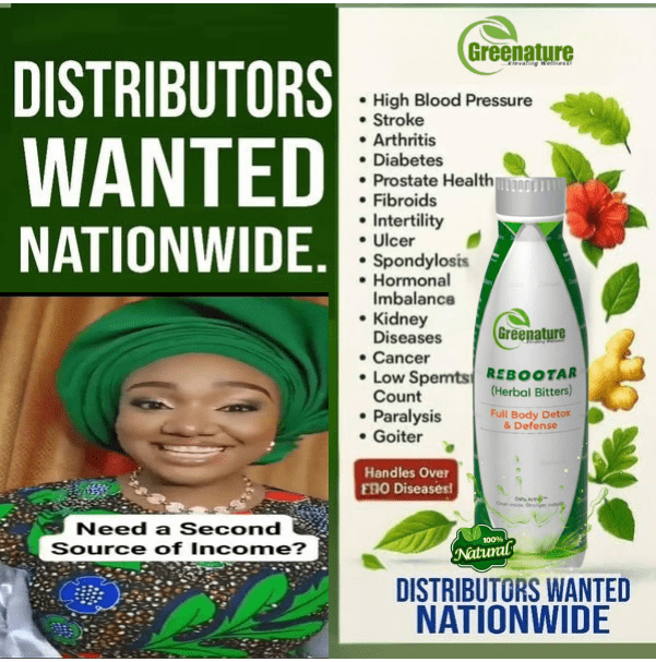 GREENATURE  INTERNATIONAL HERBAL PRODUCT STARTED OFFICIALLY HERE IN NIGERIA AS A MULTI LEVEL MARKETING COMPANY IN NOVEMBER 2025 WITH THE FIRST FLAGSHIP PRODUCT CALLED REBOOTAR HERBAL BITTERS WITH LOTS OF HEALTH TESTIMONIES. YOU ALL REALLY NEED TO GET A BOTTLE FOR YOURSELVES.